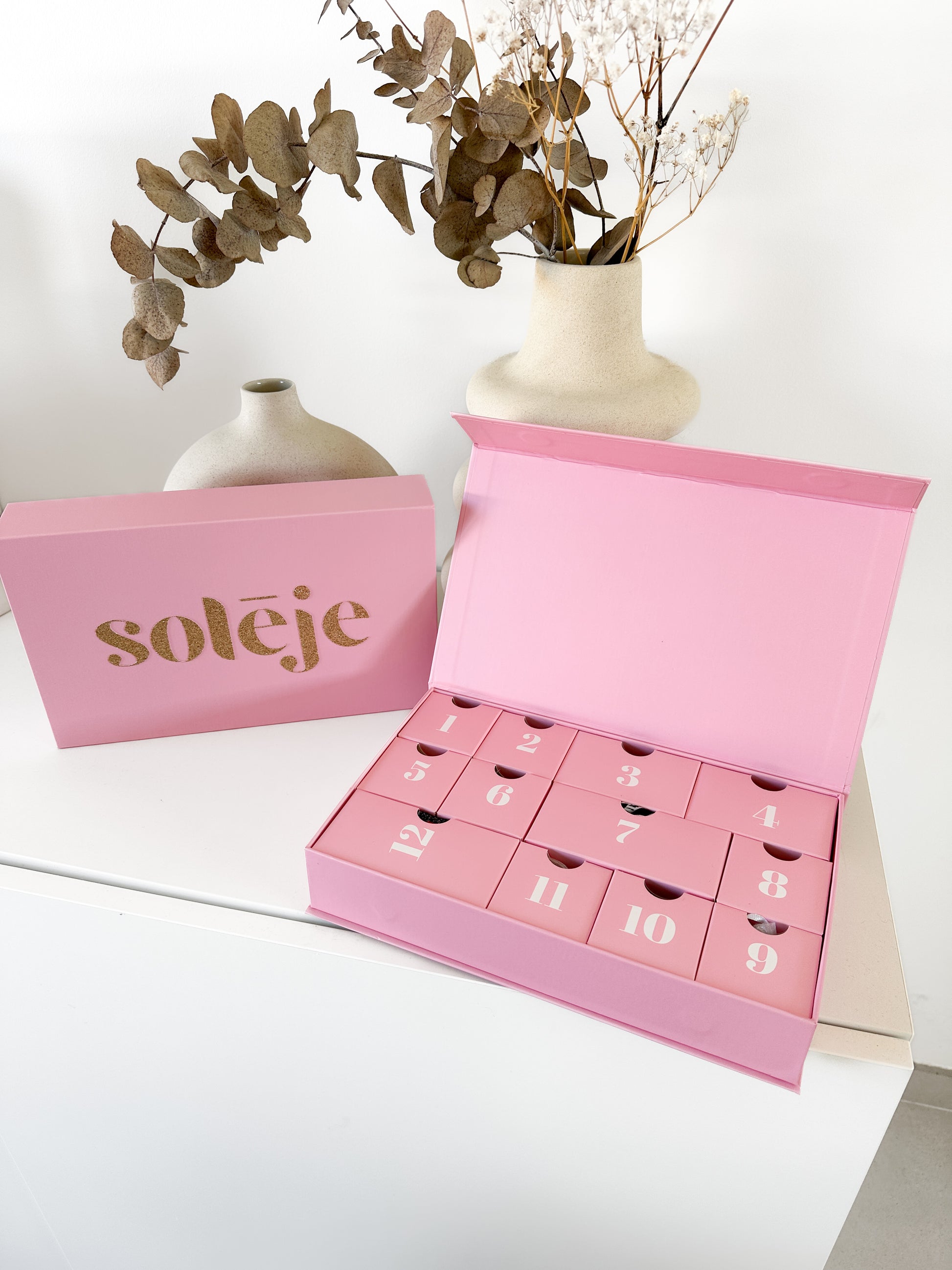 Calendrier de l'Avent 12 cases contenant des bijoux en acier inoxydables réglables et des accessoires exclusifs. Valeur de plus de 350 euros.