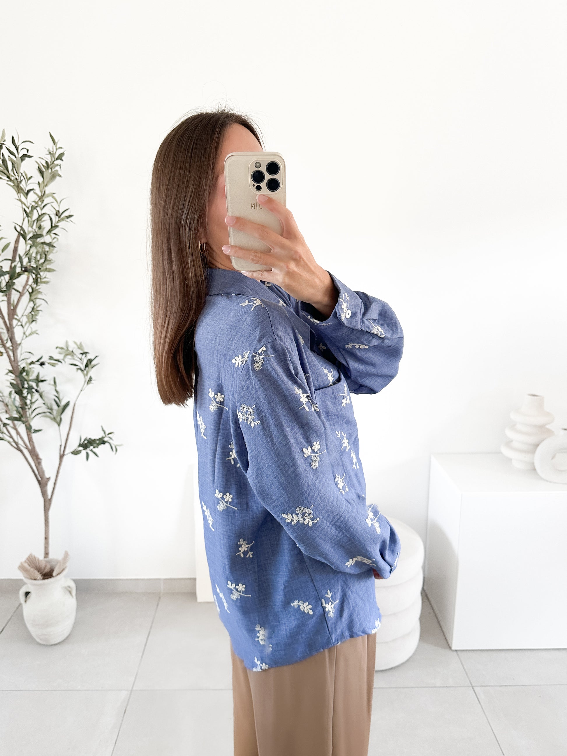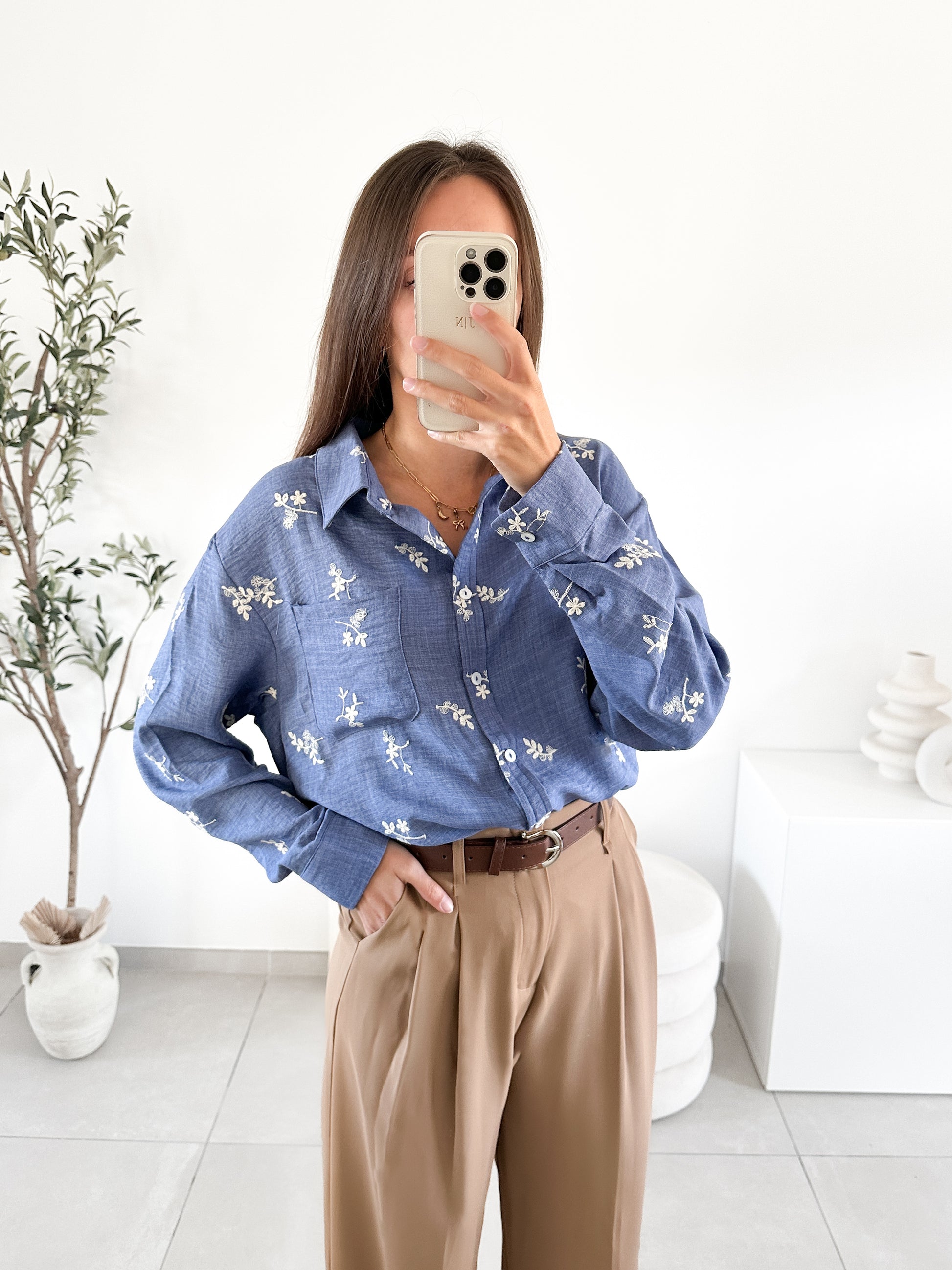 Chemise brodée bleue