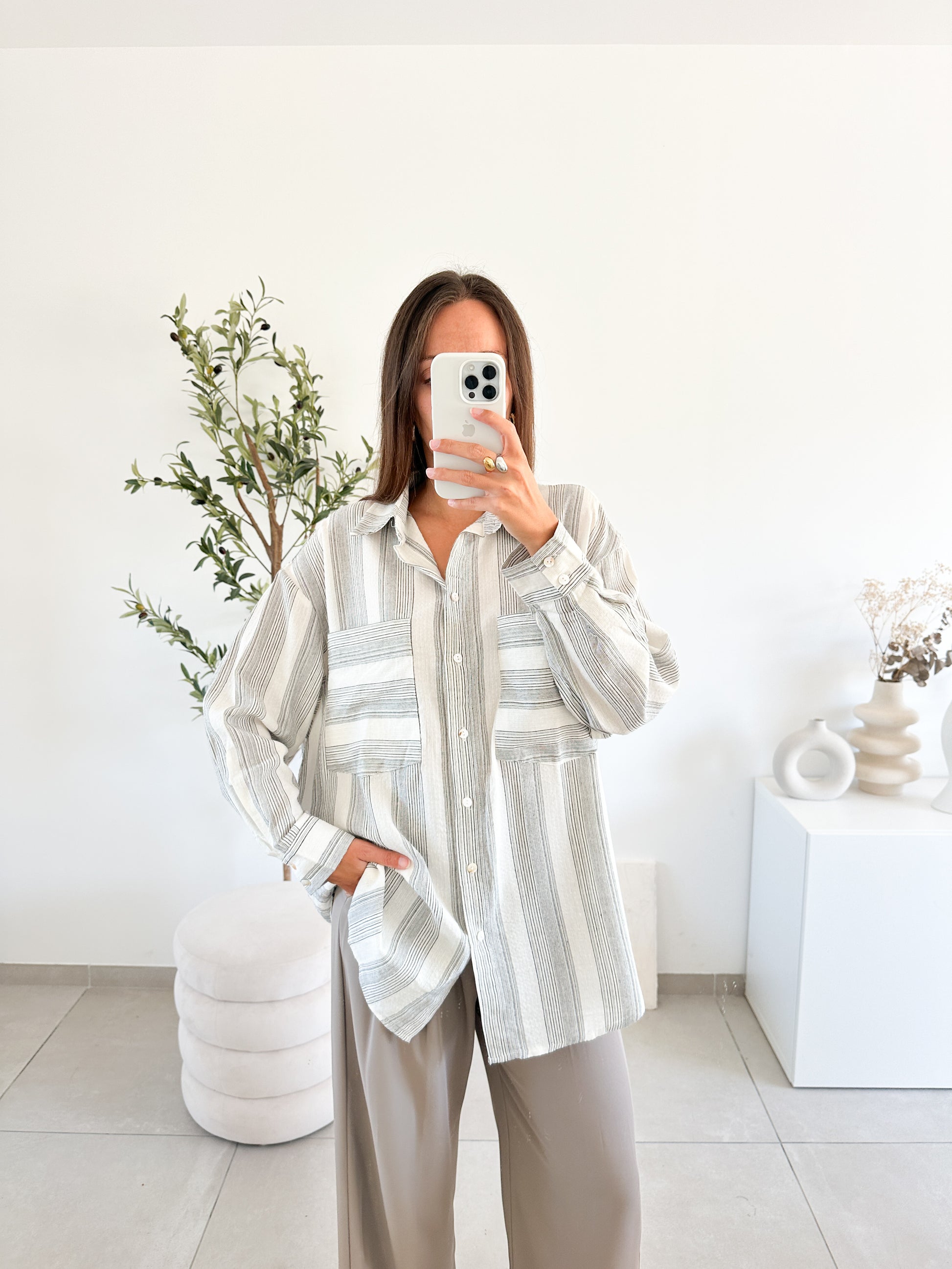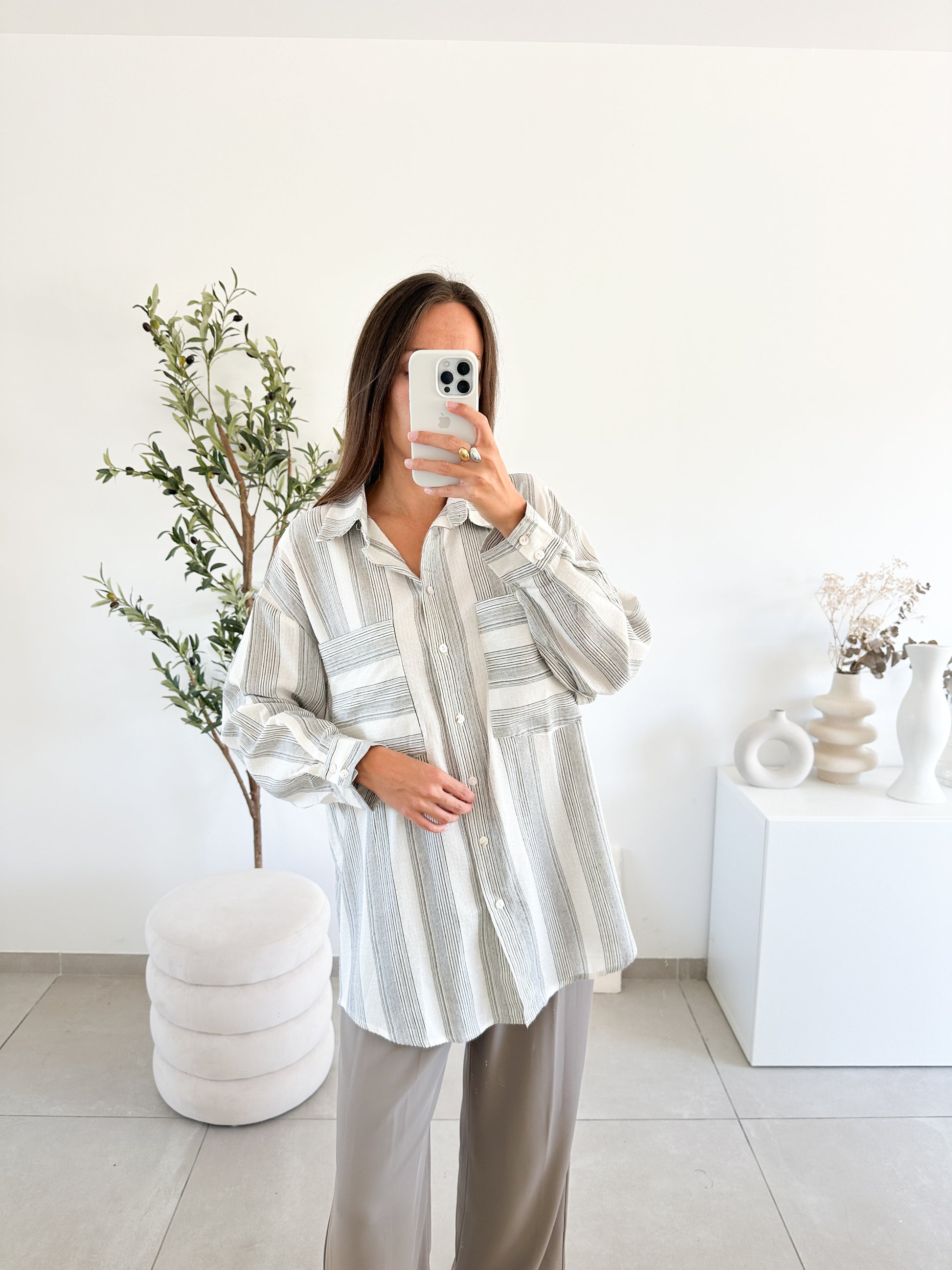 Guide des tailles : Julie mesure 1m72 et porte la taille S/M. La taille S/M correspond aux tailles 34 à 40. La taille M/L correspond aux tailles 40 à 44/46
