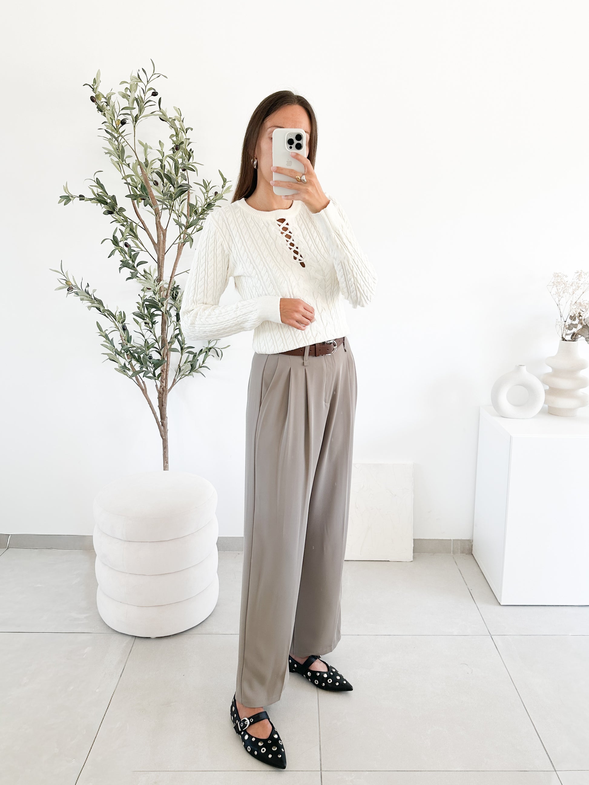 Pantalon fluide à pince. Pas transparent. Vendu avec sa ceinture.
