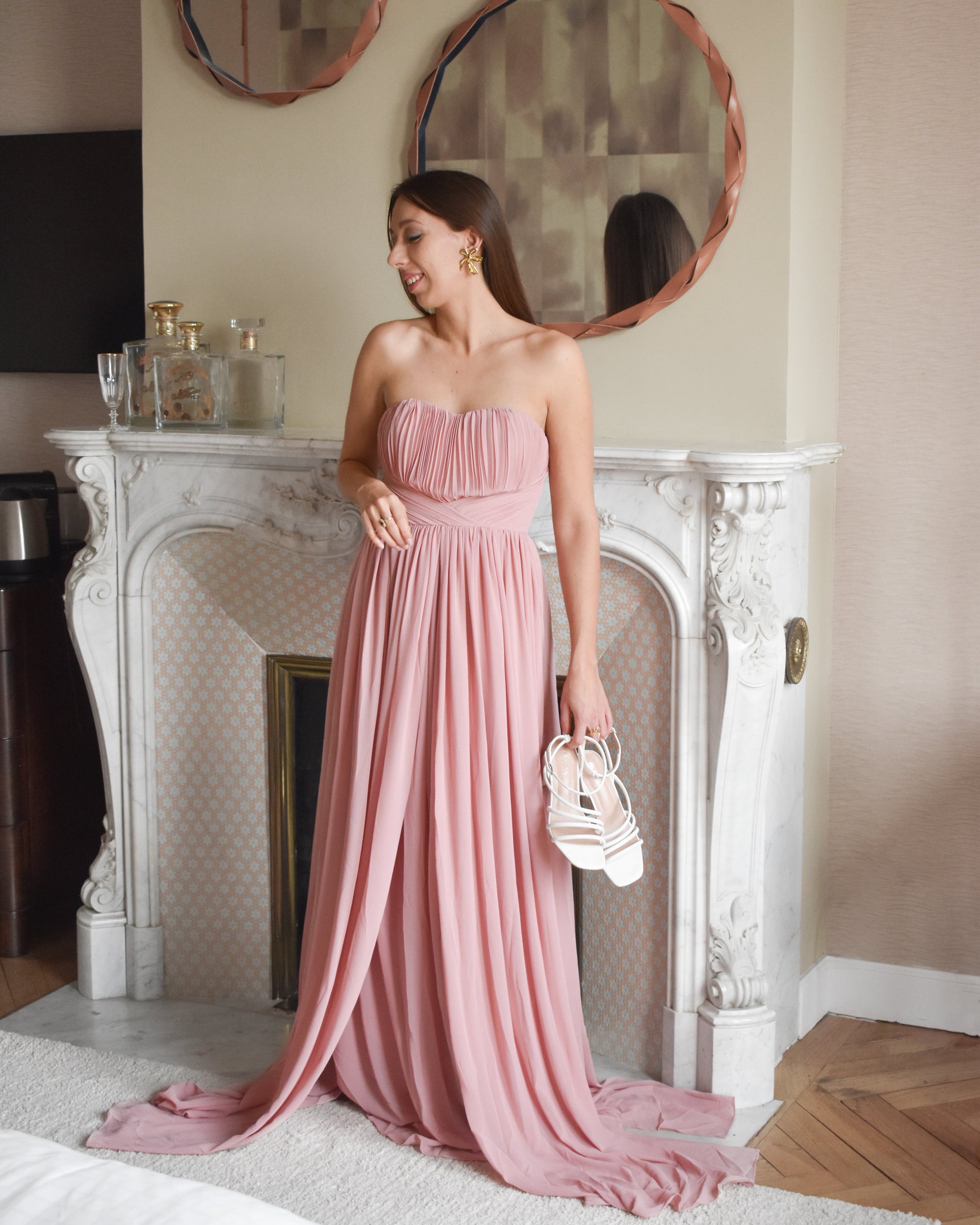 Les bretelles sont amovibles et le haut du bustier est doublé de ruban siliconé pour un meilleur maintien de la robe. Fermeture éclair et croché dans le dos. Doublure satinée et 4 volants en tulle. Elle a tout d'une grande robe à petit prix.