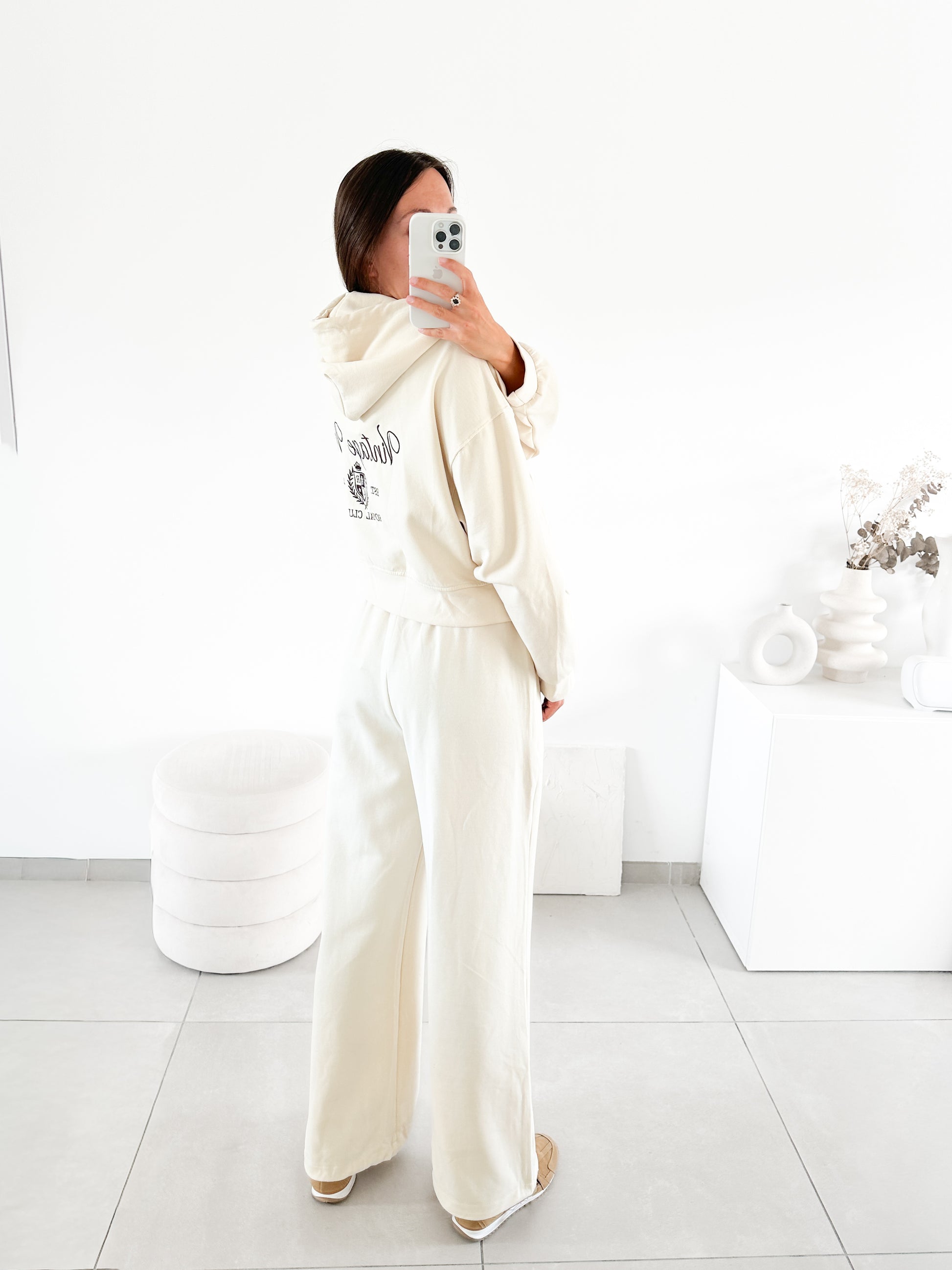 Sweat à zip brodé écru