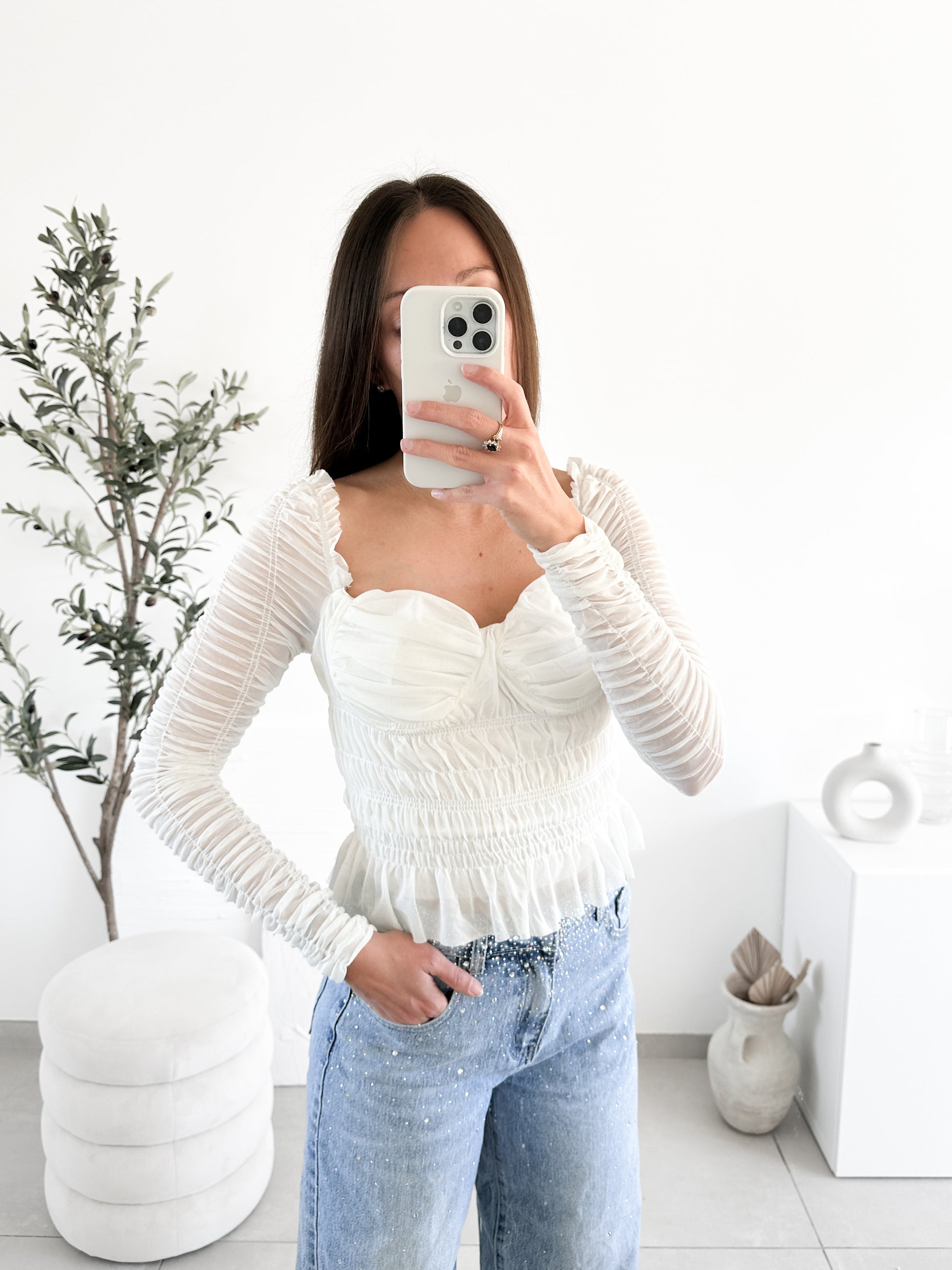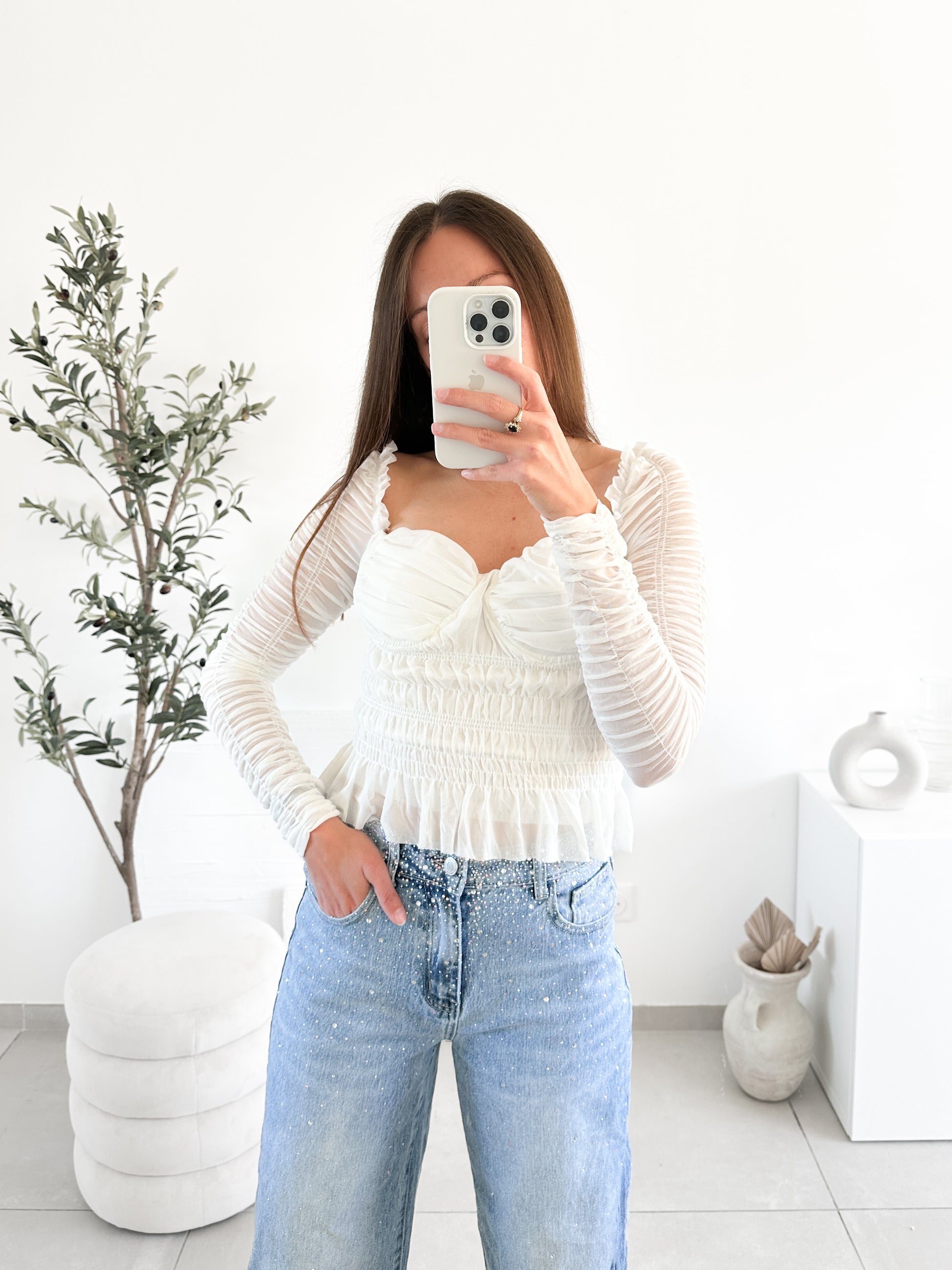 Guide des tailles : Notre mannequin mesure 1m72 et porte la taille S. Le top taille légèrement grand. Nous vous conseillons de prendre votre taille habituelle ou une demie-taille en dessous