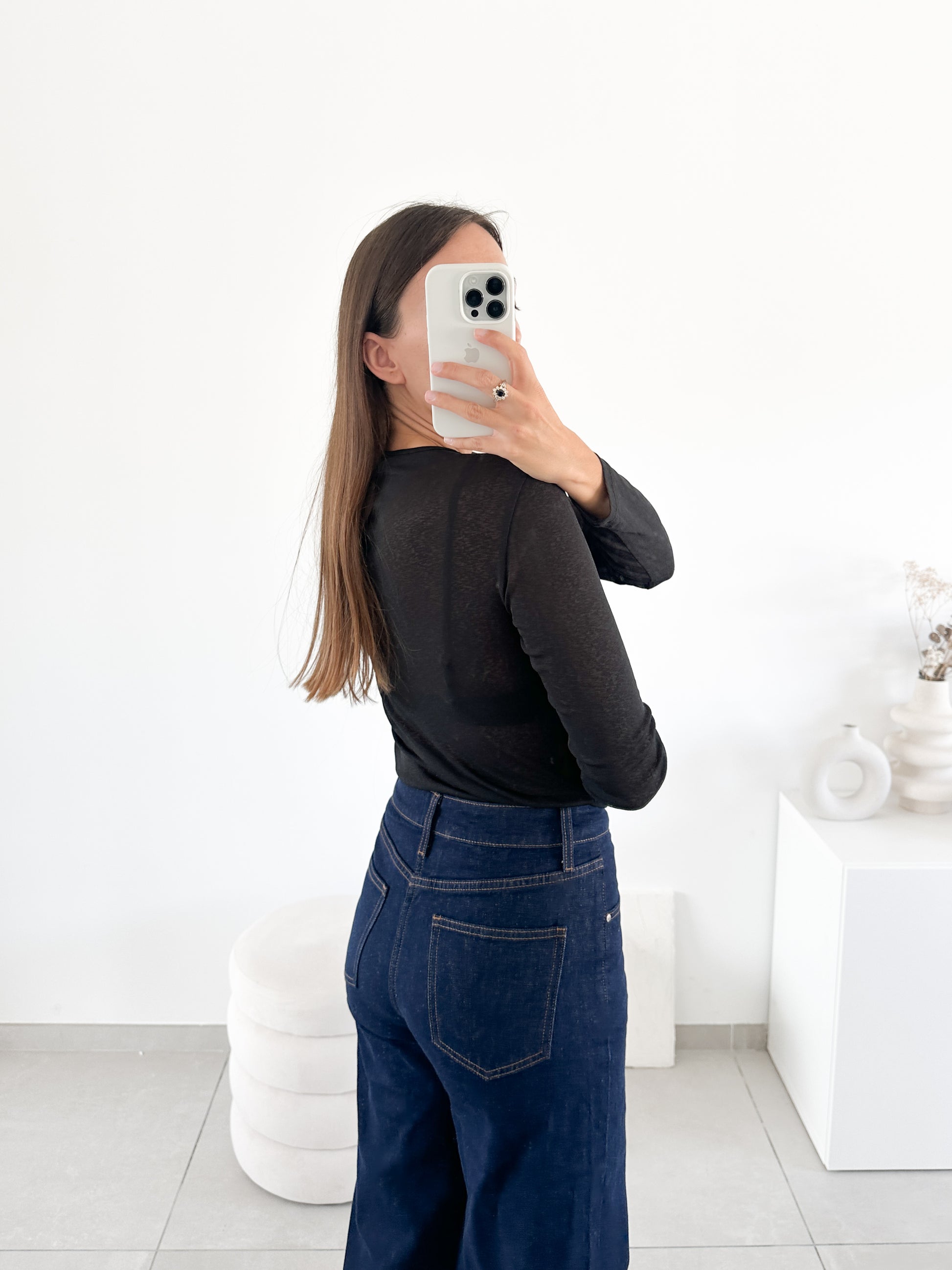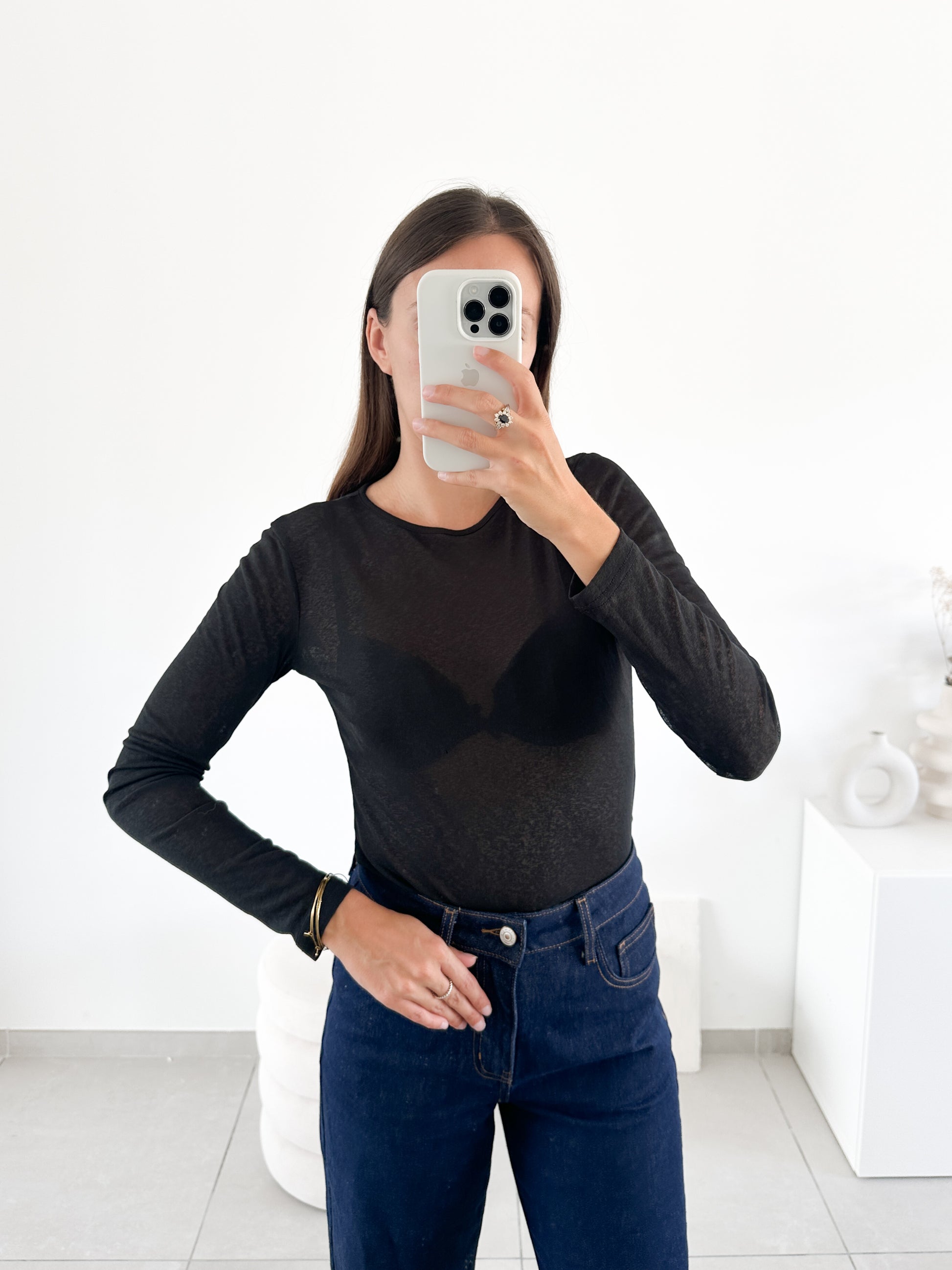 Top noir manches longues